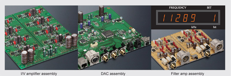 Ngược lại, Accuphase DC-950 có cách tiếp cận hoàn toàn khác. Một FPGA (mảng cổng lập trình trường) được sử dụng trong phần xử lý kỹ thuật số, cùng với mạch lọc trung bình di chuyển để dịch chuyển xung nhịp. Tái tạo MDSD sáng tạo này giúp cấu trúc liên kết mạch có khả năng loại bỏ tiếng ồn hiệu quả cao. Một lợi thế lớn là thực tế là các lỗi chuyển đổi trong giai đoạn D / A được giữ cực kỳ nhỏ, trong khi chức năng bộ lọc cắt cao đã được tích hợp trong mạch.