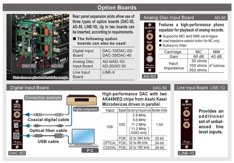 - Hiển thị tần số lấy mẫu cho tín hiệu đầu vào kỹ thuật số (khi cài đặt DAC-40 / DAC-50)