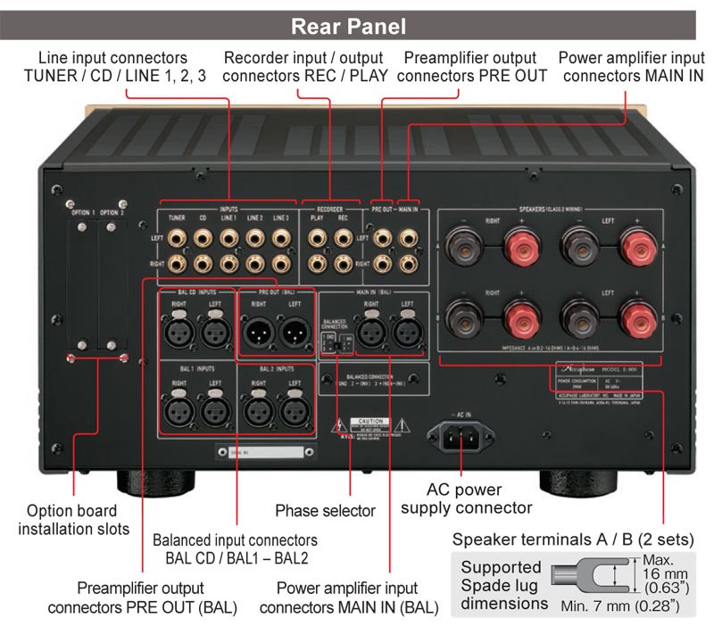 Chú thích các cổng kết nối trên Amply Accuphase E800