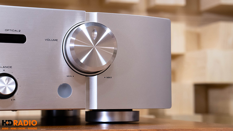 Mặt trước PM6007 vẫn là tập hợp của các chi tiết nhôm đã qua xử lý cẩn thận, có thể gây ấn tượng với phần lớn người chơi audio qua khả năng đem lại cảm giác sang trọng, tinh tế cho thiết bị. Trong đó, nổi bật nhất vẫn là 2 nút xoay lớn (nút trái để đổi nguồn nhạc, nút phải chỉnh âm lượng) và dải đèn LED hẹp quen thuộc, có nhiệm vụ hiển thị thông tin nguồn phát để người dùng theo dõi.