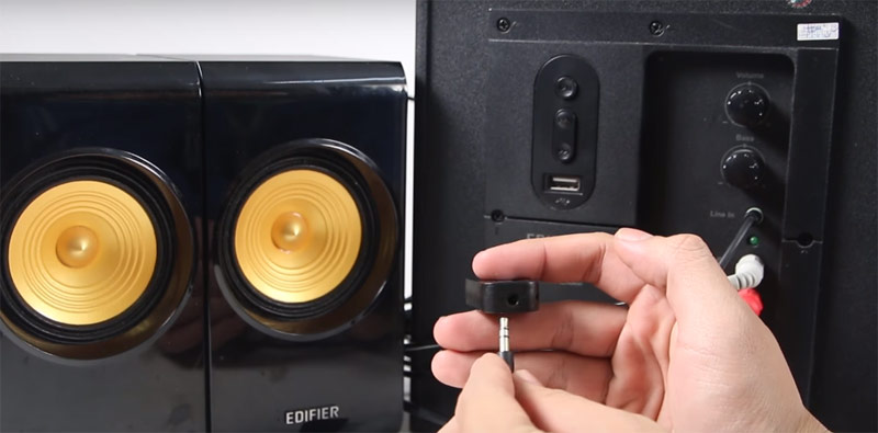 - Nếu loa không có cổng 3,5 mm mà chỉ có cổng LR thì bạn cần mua 1 sợi dây 1 đầu 3,5mm 1 đầu AV, đầu AV thì cắm vào cổng LR trên loa, đầu 3,5 mm thì cắm vào usb bluetooth.