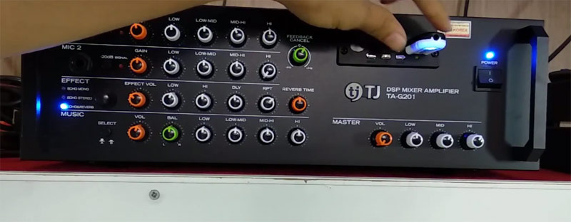 Thao tác thì tương tự như chế loa thành loa bluetooth chũng ta cũng chế âm ly thành âm ly bluetooth, thông qua cổng AV trên âm ly. Bạn cắm giắc LR trắng đỏ vào cổng AV trên âm ly, 1 đầu 3,5 mm cắm vào USB Bluetooth. Kết nối usb bluetooth vào nguồn nguồn 5V riêng là xong.