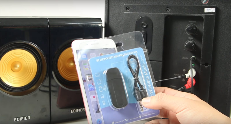 Gắn usb biến loa thường thành loa bluetooth - USB Bluetooth 4.0 vào loa thường thông qua dây 3,5 (hoặc dây 3,5 - LR tùy thuộc vào loa có cổng 3,5 hay không).