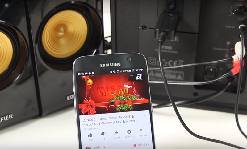 - Một chiếc loa thường không có bluetooth, có cổng AUX (cắm giắc 3,5) hoặc cổng AV (cắm giắc LR trắng đỏ).