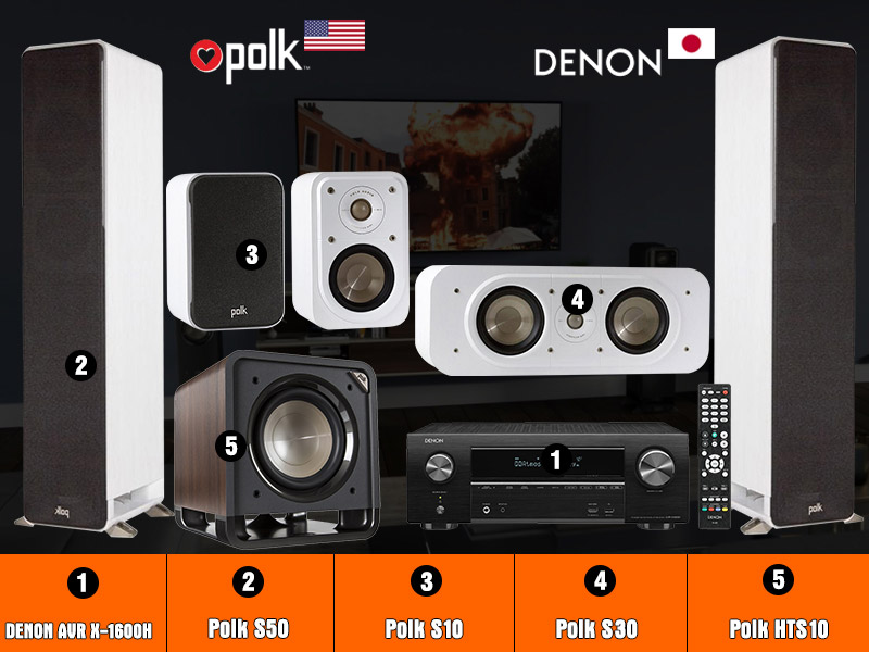 Đánh giá Bộ dàn âm thanh xem phim 5.1 Polk AT-GD33 (Denon AVR-X1600H, Polk Audio Signature S50, S10, S30, Sub Polk Audio HTS10)