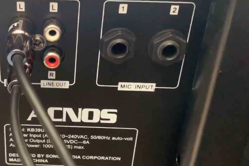 - Cách kết nối loa kéo với đầu karaoke, amply: kết nối qua giắc AV trắng đỏ.