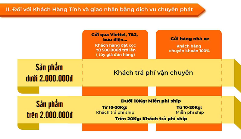 - Trên 10 Kg: Khách trả phí vận chuyển