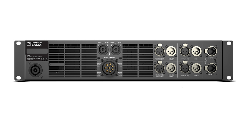 L-Acoustics LA12X được trang bị đầy đủ hệ thống các cổng kết nối bao gồm đầu nối loa SpeakON cùng các đầu nối Ethernet để truyền âm thanh AVB và để điều khiển và giám sát từ xa,cùng đầu vào âm thanh tương tự và kỹ thuật số (AES / EBU).