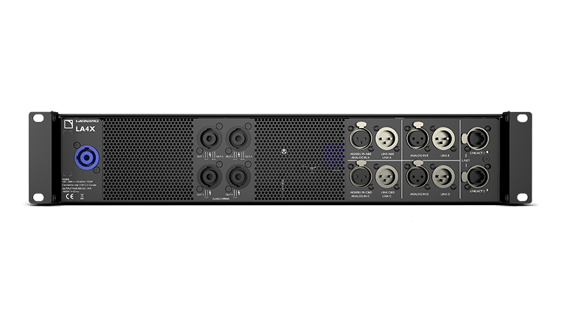 Cục công suất L-Acoustics LA4X được trang bị hệ thống cổng kết nối đa dạng, tiện lợi cùng thư viện cài đặt trước L-ACOUSTICS toàn diện - Thư viện tích hợp với các cài đặt trước của nhà sản xuất cho tất cả các loa của nhà sản xuất và 10 vị trí bộ nhớ của người dùng, cung cấp khả năng kiểm soát, làm chủ, sử dụng thiết bị một cách chuyên nghiệp nhất. Hệ thống được trang bị đầy đủ đầu nối loa SpeakON cùng các đầu nối Ethernet để truyền âm thanh AVB và để điều khiển và giám sát từ xa,cùng đầu vào âm thanh tương tự và kỹ thuật số (AES / EBU).