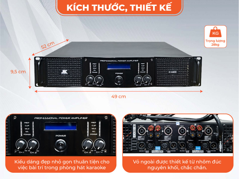 Đánh giá Cục công suất JKAudio H4400, 400W x 4 Kênh, Class H