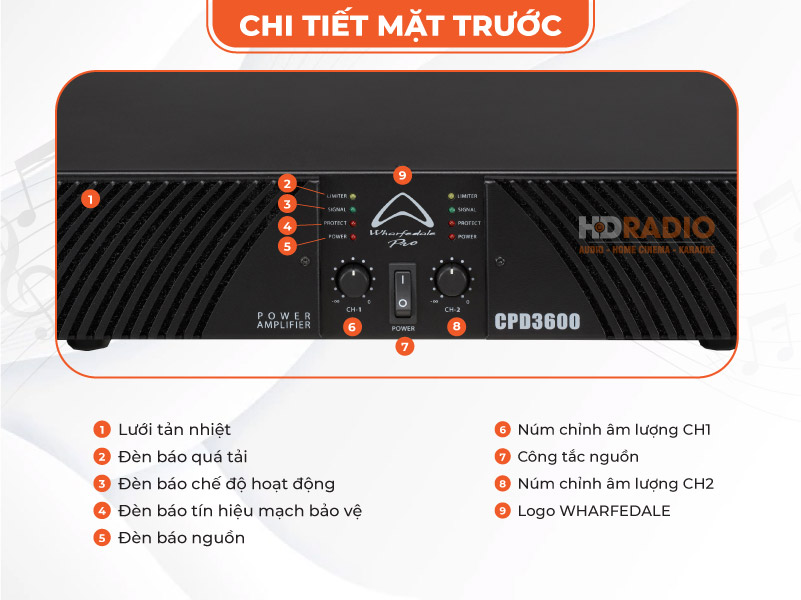 Cục công suất Wharfedale CPD3600, 870W x 2 Kênh Cục công suất Wharfedale CPD3600, 870W x 2 Kênh