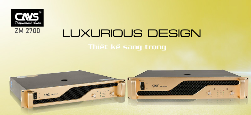 Cavs ZM2700 Gold được thiết kế với công suất đầu ra lên tới 1200W/2 kênh (600W 1 kênh), có tới 20 sò công suất, trang bị mạch khuếch đại class AB mang lại âm thanh mạnh mẽ, quyền lực mà vẫn đảm bảo được năng lượng lãng phí ở mức tối thiểu. Mạch class AB ứng dụng trong cục đẩy sẽ góp phần hạn chế được tình trạng bị nóng, từ đó tăng độ bền cho sản phẩm. Bộ khuếch đại đã được xây dựng trong tải, điện áp đường dây, và giám sát I / O, để bảo vệ chống lại các lỗi.