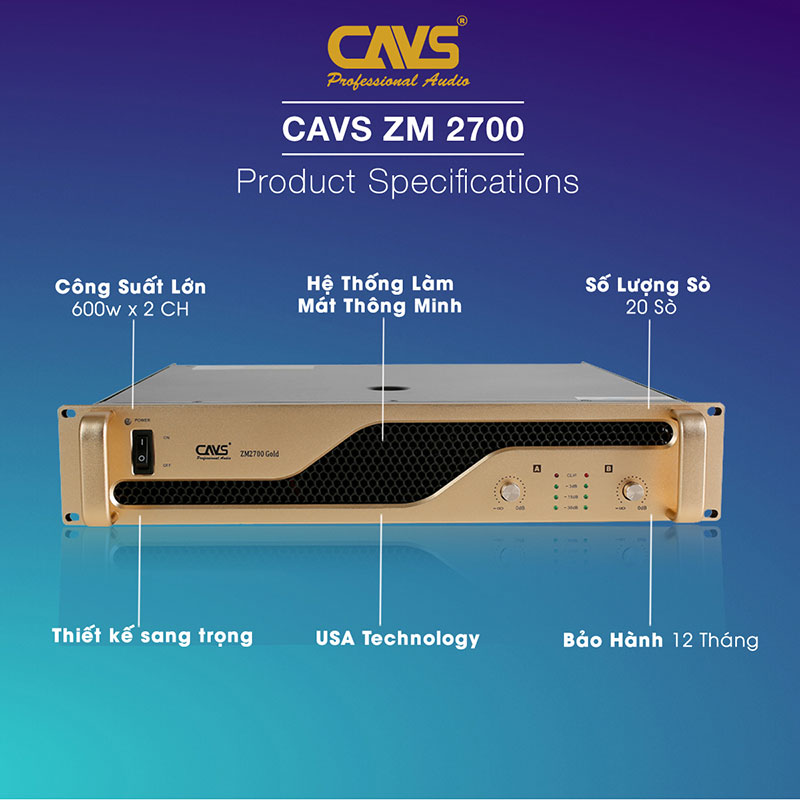 USA – TECHNOLOGY: Là mẫu cục đẩy được chuyển giao và sản xuất dựa trên các tiêu chuẩn Hãng CAVS USA, được các kỹ sư tại Mỹ giảm sát chất lượng từng bước để cho ra sản phẩm chất lượng và có tính ứng dụng cao. Nhờ đó mà Cavs ZM2700 Gold có tính ổn định cực cao, nếu một trong những hệ thống bị lỗi, toàn bộ các hệ thống khác sẽ đóng cửa, đảm bảo an toàn cho các thiết bị của bạn.
