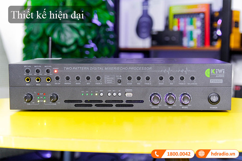 Cục Đẩy Liền Vang Cơ Kiwi PD6800 thiết bị được tích hợp 2 trong 1 ngay trong một sản phẩm giúp tiếp kiệm tối đa không gian cùng sự tiện lợi trong đâu nối phù hợp với những phòng karaoke gia đình có không gian hạn chế.