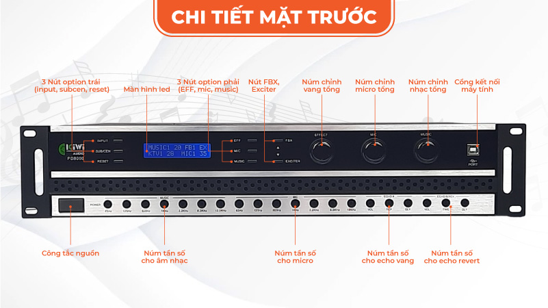 Cục Đẩy Liền Vang Kiwi PD8000, Công Suất 400W x 2 Kênh, Bluetooth, Optical Cục Đẩy Liền Vang Kiwi PD8000, Công Suất 400W x 2 Kênh, Bluetooth, Optical