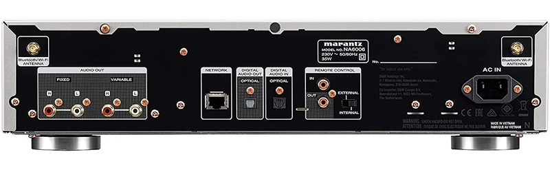 Network Audio Player + DAC Marantz NA6006 Cung cấp đầu ra kết nối cố định hoặc mức thay đổi có thể lựa chọn để kết nối trực tiếp với loa đang hoạt động hoặc đầu vào trực tiếp bộ khuếch đại công suất để sử dụng đầu phát / bộ tiền khuếch đại kỹ thuật số. Điều khiển âm lượng bằng thiết bị cầm tay từ xa hoặc thông qua các ứng dụng tương thích.