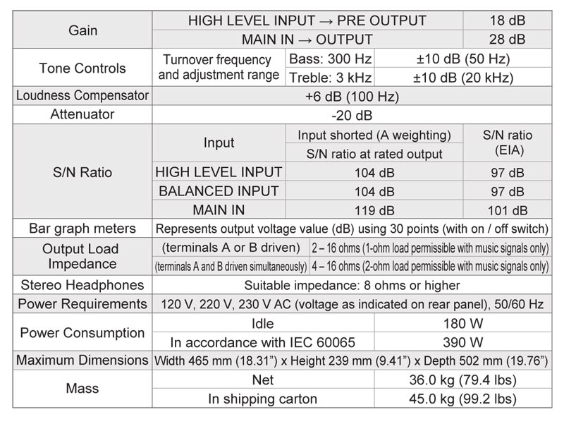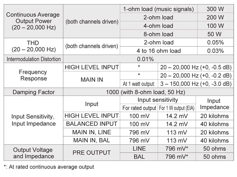 - Tiến trình công suất tuyến tính 50 watt thành 8 ohms, 100 watt thành 4 ohms và 200 watt thành 2 ohms.