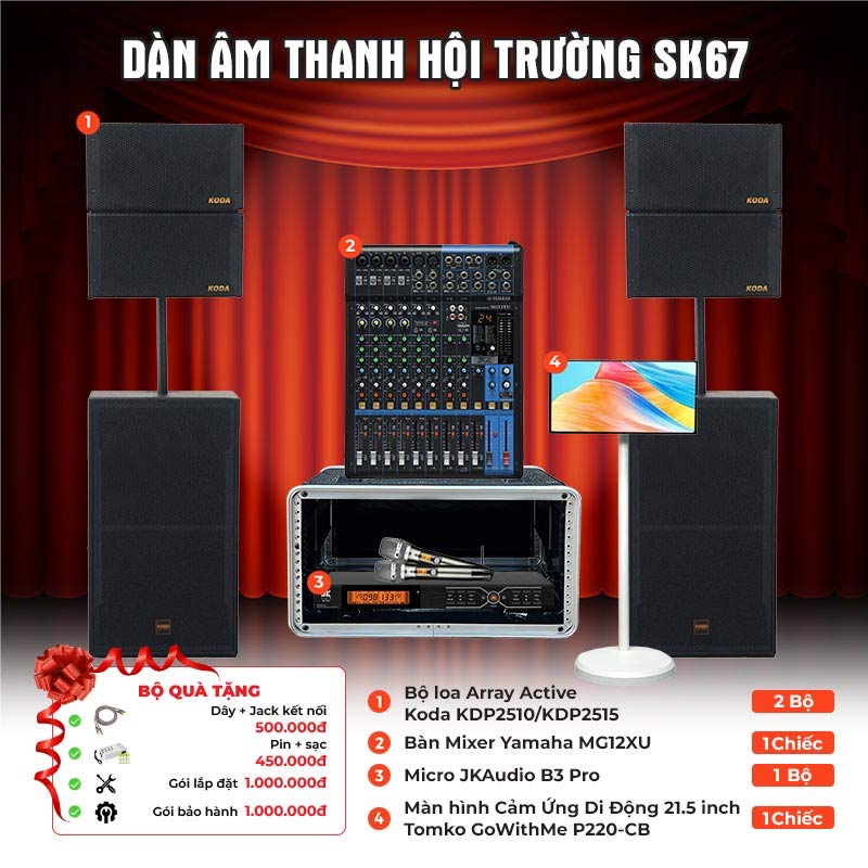 Đánh giá Dàn âm thanh hội trường SK67 (Koda KDP2510/KDP2515, JKAudio B3 Pro, Yamaha MG12XU, Tomko GoWithMe P220-CB)