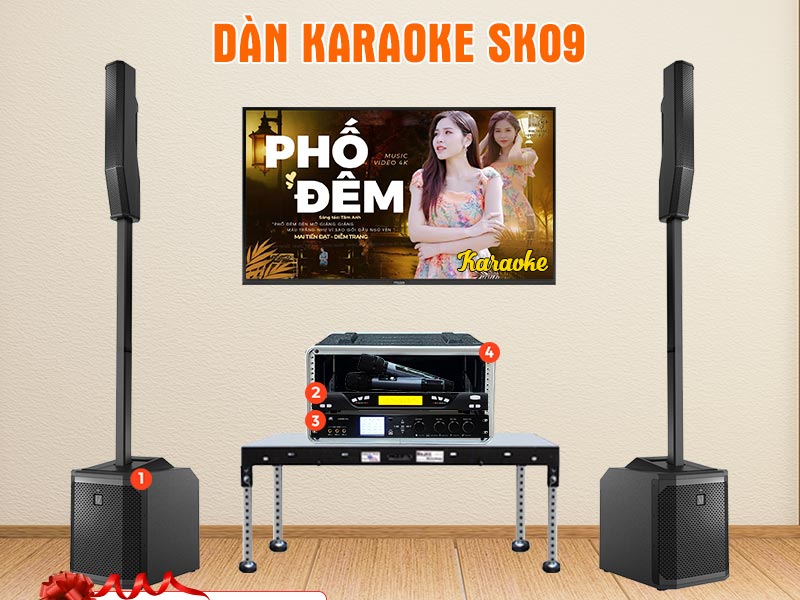 Nếu bạn đang tìm kiếm một hệ thống âm thanh karaoke chuyên nghiệp vừa tinh gọn vừa mạnh mẽ, thì Dàn karaoke Column Array SK09 chính là một gợi ý đáng cân nhắc. Đây cũng chính là cái tên thứ 2 góp mặt trong danh sách "TOP 10 hệ thống âm thanh karaoke cao cấp HAY - VIP cho Biệt thự, Biệt phủ". Bộ đàn được thiết kế để phục vụ tối ưu cho các không gian từ 50 - 100m2, là sự kết hợp hoàn hảo giữa công nghệ hiện đại của thương hiiệu Electro-Voice và khả năng xử lý âm thanh vượt trội của JKAudio. Không chỉ tạo nên những màn trình diễn karaoke sống động, SK09 còn phù hợp để nghe nhạc, trình diễn trực tiếp và đáp ứng mọi nhu cầu giải trí cao cấp tại gia. Sự phối hợp đồng bộ giữa loa, vang số, micro và tủ đựng giúp bộ dàn hoạt động ổn định, bền bỉ và dễ dàng vận hành trong mọi hoàn cảnh.