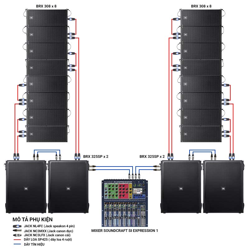 Sơ đồ kết nối bộ Dàn âm thanh Line Array JBL AR01.