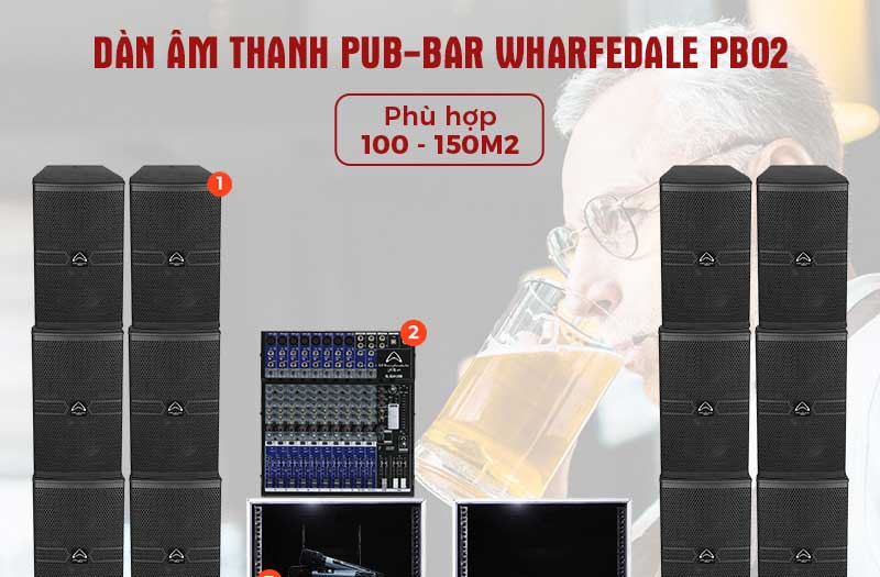 Hệ thống âm thanh PUB-BAR PB02 được phối ghép hoàn hảo dựa trên các thiết bị âm thanh chính hãng, đến từ những thương hiệu nổi tiếng trên thế giới như Wharfedale, JK Audio...mang đến khả năng chơi nhạc đỉnh cao, giữ "sức nóng" cho không gian từ 100 - 150m2 và người chơi dễ dàng chìm đắm trong âm thanh.