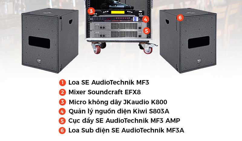 Đánh giá Dàn âm thanh PUB-LOUNGE SE PL01 (SE AudioTechnik MF3, MF3A, MF3 AMP, Soundcraft EFX8, JKaudio K800, Kiwi S803A)