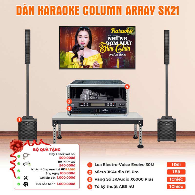 Đánh giá Dàn karaoke Column Array SK21 (Electro-Voice Evolve 30M, JKaudio X6000 Plus, B5 Pro, Tủ Rack ABS 4U)
