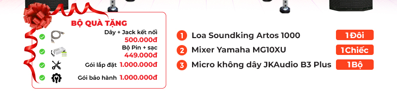 Đánh giá Dàn âm thanh sân khấu biểu diễn Column Array SK26(Soundking Artos 1000, Yamaha MG10XU, JKaudio B3 Plus)