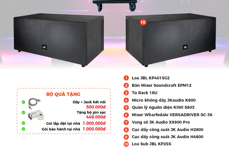 Đánh giá Dàn âm thanh sân khấu biểu diễn PUB-LOUNGE SK37 (JBL KP4012G2, Sub JBL KP25S, JKAudio H4800, JKAudio H2800, JKAudio X9900 pro, Wharfedale VERSADRIVER SC-36, Soundcraft EPM12, JKAudio K800, KIWI S803, Tủ Rack 16U)