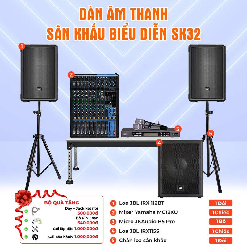Đánh giá Dàn Âm Thanh Sân Khấu Biểu Diễn SK32 (Loa JBL IRX 112BT, Loa JBL IRX115S, Mixer Yamaha MG12XU, Micro JKAudio B5 Pro, Chân loa sân khấu)