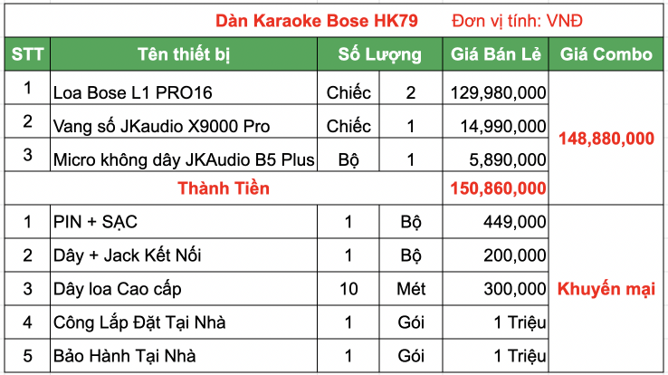 Dàn karaoke Bose HK79 được phối hoàn hảo từ 3 thiết bị âm thanh chính gồm: