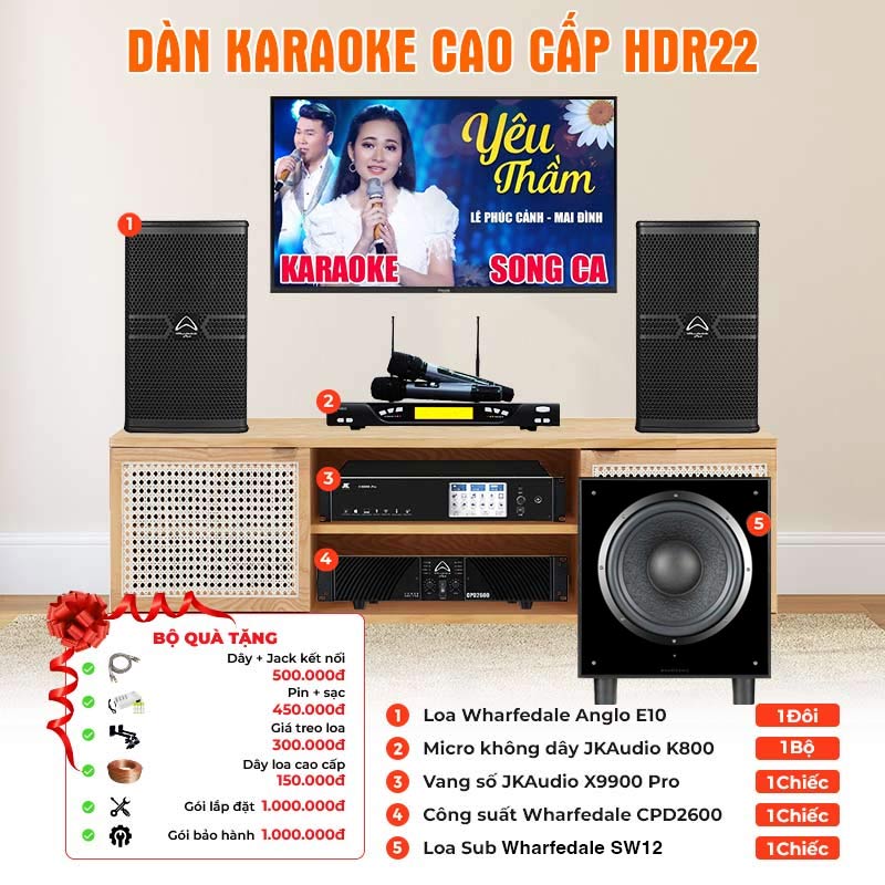 Dàn Karaoke Cao Cấp HDR22 ( Whafedale Anglo E10, CPD2600, Jkaudio X9900 Pro, K800, SW12 ) Dàn Karaoke Cao Cấp HDR22 ( Whafedale Anglo E10, CPD2600, Jkaudio X9900 Pro, K800, SW12 )