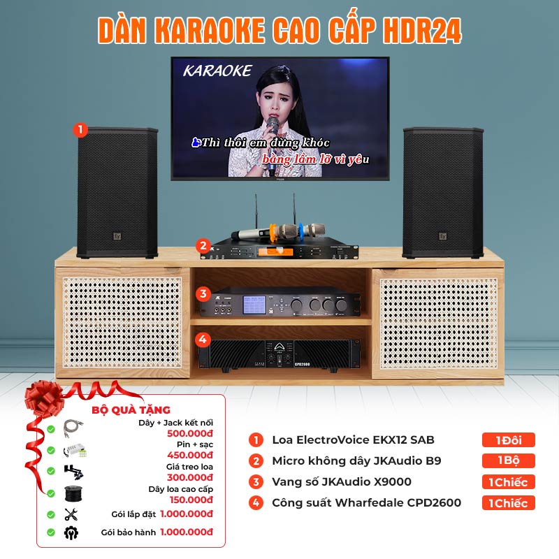 Dàn Karaoke Cao Cấp HDR24 ( Electrovoice EKX12, Công suất, Vang số, Micro không  dây ) Dàn Karaoke Cao Cấp HDR24 ( Electrovoice EKX12, Công suất, Vang số, Micro không dây )