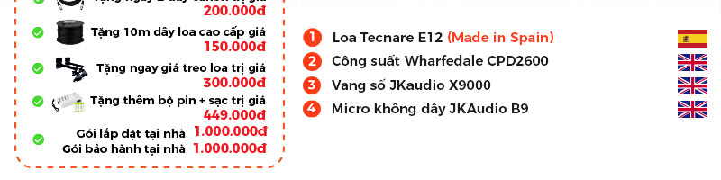 Tất cả tạo nên một dàn karaoke gia đình ấn tượng, hứa hẹn sẽ mang đến cho gia đình bạn những trải nghiệm âm thanh tuyệt vời, với chất âm sáng, trong, sống động trong từng thanh âm bởi được tích hợp đầy đủ các công nghệ mới nhất, hiện đại, tối tân trong từng thiết bị, cụ thể:
