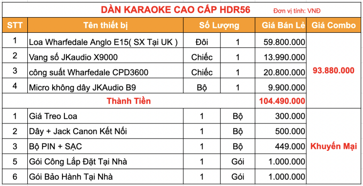 Đánh giá Dàn Karaoke Cao Cấp HDR56 (Whafedale Anglo E15, CPD3600, Vang số, Micro)