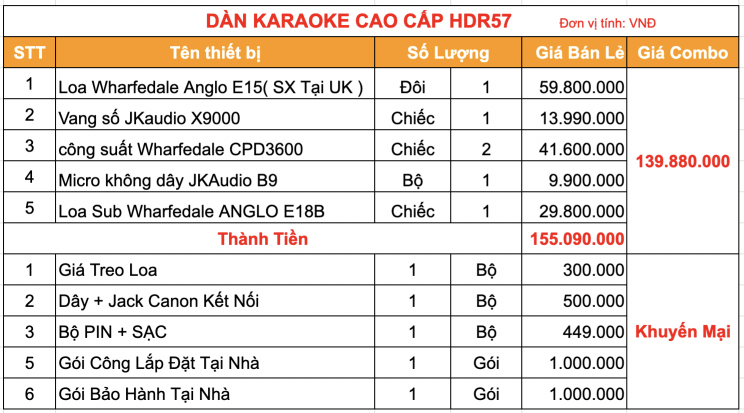 Đánh giá Dàn Karaoke cao cấp HDR57 (Whafedale Anglo E15, CPD3600, Vang số, Micro, Sub hơi)