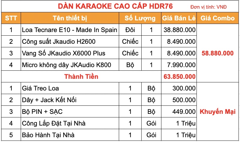 Dàn Karaoke cao cấp HDR76 (Tecnare E10, JKAudio H2600, X6000 Plus, JKAudio K800) Dàn Karaoke cao cấp HDR76 (Tecnare E10, JKAudio H2600, X6000 Plus, JKAudio K800)