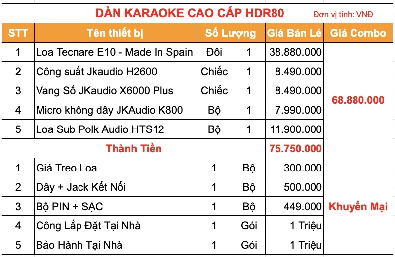 Dàn karaoke cao cấp HDR80 (Tecnare E10, Công suất, Vang số, Micro K800, Loa Sub ) Dàn karaoke cao cấp HDR80 (Tecnare E10, Công suất, Vang số, Micro K800, Loa Sub )