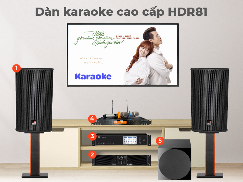 Với nhiều năm kinh nghiệm trong việc phối ghép các bộ dàn karaoke, bạn có thể tin tưởng sử dụng bộ dàn karaoke cao cấp HDR81 của chúng tôi, hứa hẹn sẽ làm thỏa mãn đam mê ca hát của bạn.