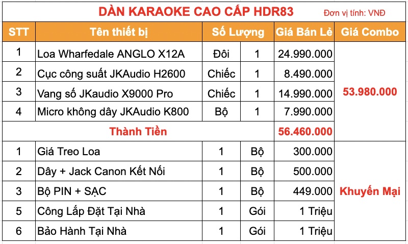 Đánh giá Dàn karaoke cao cấp HDR83 (Wharfedale Anglo X12A, JKaudio H2600, X9000 Pro, K800)