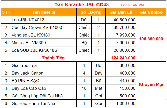 Cấu hình phối ghép bộ dàn karaoke GD43 gồm có: