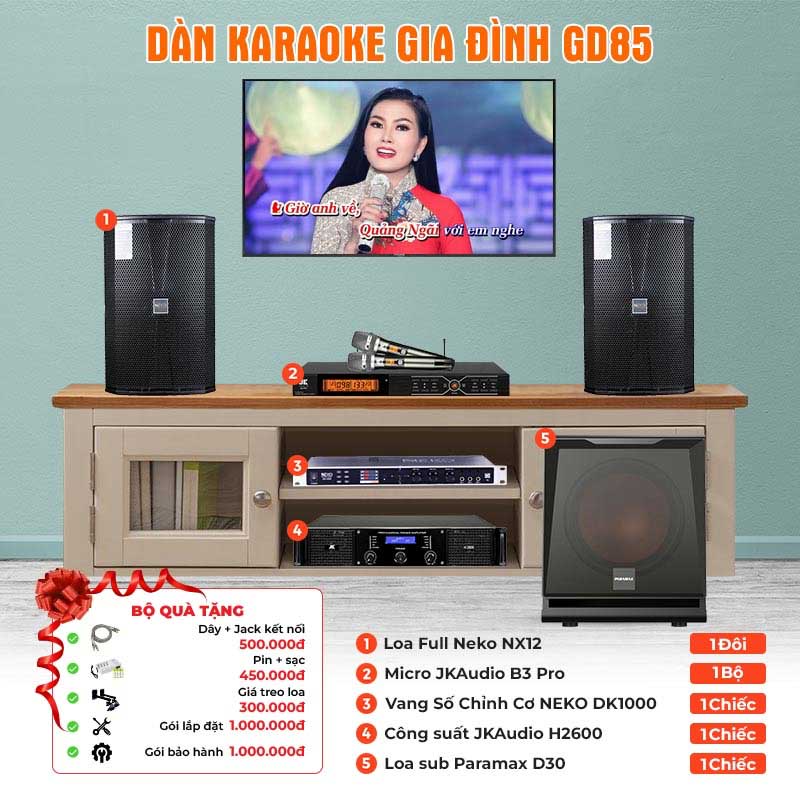 Đánh giá Dàn karaoke gia đình GD85 (Neko NX12, NEKO DK1000, JKAudio H2600, Sub Paramax D30, JKaudio B3 Pro)