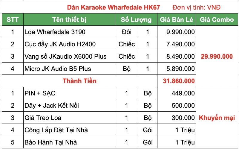 Đánh giá Dàn karaoke gia đình HK67 (Wharfedale 3190, JKAudio H2400, X6000 Plus, B5 Plus)