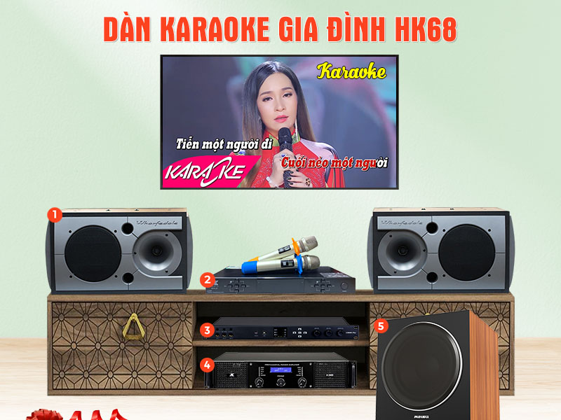 Dàn Karaoke Gia Đình HK68 có 5 thiết bị chính để tạo nên 1 bộ dàn hát karaoke hoàn hảo bao gồm: