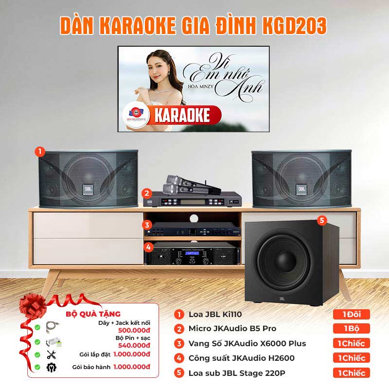 Đánh giá Dàn karaoke gia đình KGD203 (JBL Ki110, JKAudio H2600, X6000 Plus, B5 Pro, JBL Stage 220)