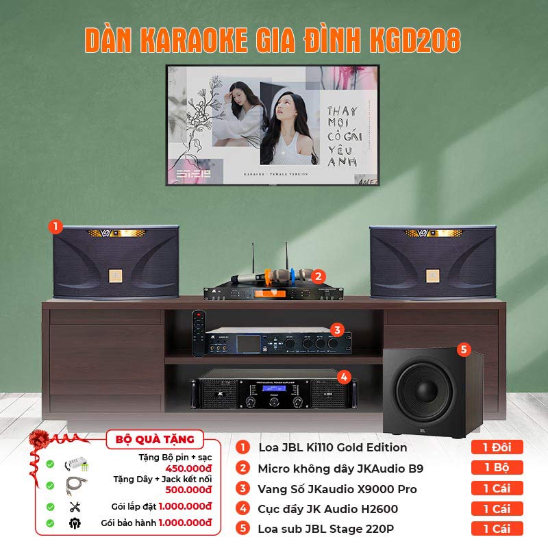 Đánh giá Dàn karaoke gia đình KGD208 (JBL Ki110 Edition, JKAudio H2600, X9000 Pro, B9, JBL Stage 220P)