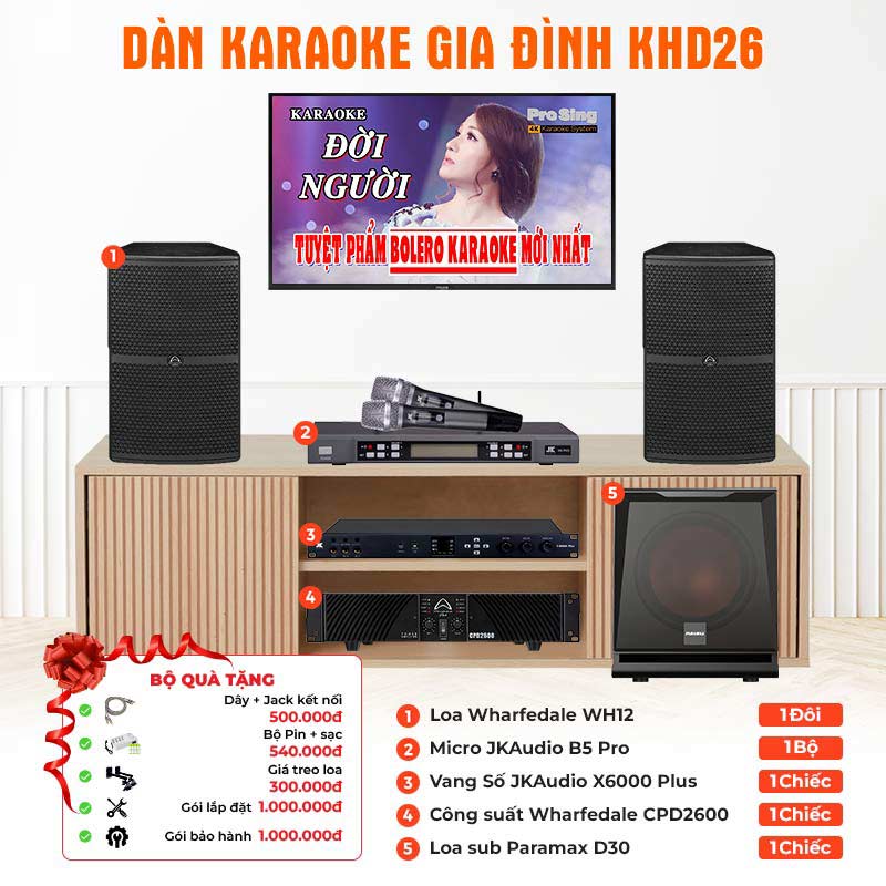 Dàn karaoke gia đình KHD26 (Wharfedale WH12, CPD2600, sub Paramax D30, JKaudio X6000 Plus, B5 Pro) Dàn karaoke gia đình KHD26 (Wharfedale WH12, CPD2600, sub Paramax D30, JKaudio X6000 Plus, B5 Pro)