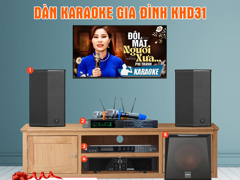 Dàn Karaoke Gia Đình KHD31 có 5 thiết bị chính để tạo nên 1 bộ dàn hát karaoke hoàn hảo bao gồm:
