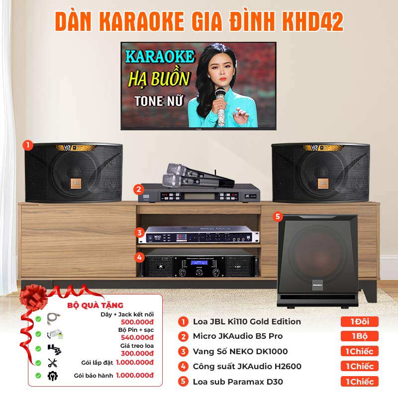 Đánh giá Dàn karaoke gia đình KHD42 (JBL Ki110 Gold Edition, Neko DK1000, JKaudio H2600, B5 Pro, sub Paramax D30)