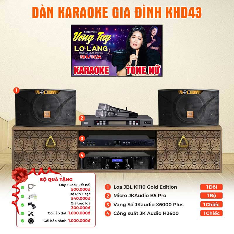 Đánh giá Dàn karaoke gia đình KHD43 (JBL Ki110 Gold Edition, JKAudio H2600, X6000 Plus, B5 Pro)